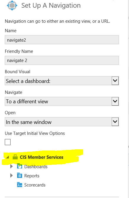 I’ve got a MEMBER SERVICES project. I’ve built a “My Dashboard” type of landing page for everyone in MS that has drop downs to their various reports and linking in the UI via “Set Up a Navigation” is easy. The links even crosses platforms from TEST to PROD without any extra effect.